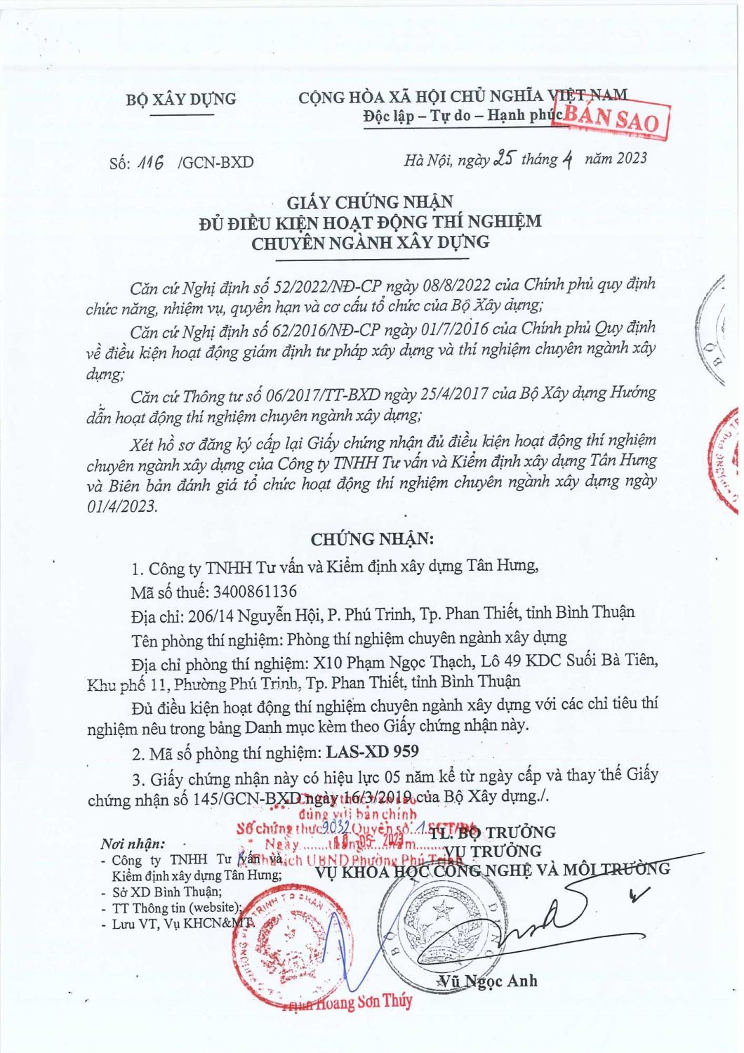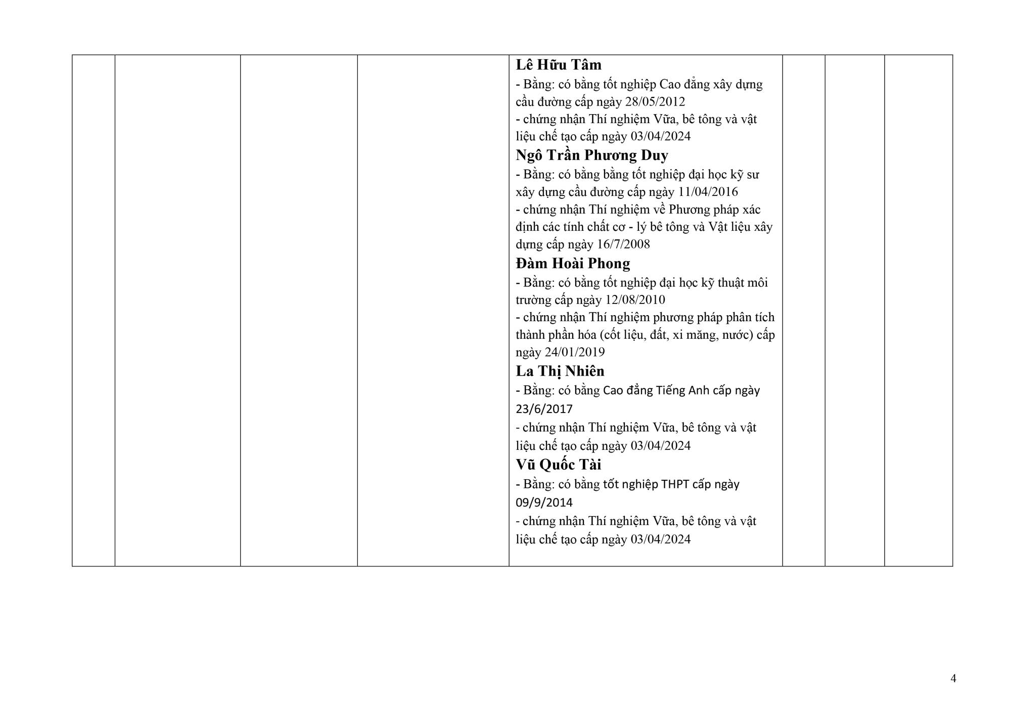 👉 Tất cả nhân sự đều được cấp chứng nhận về thí nghiệm vật liệu, kiểm định bê tông, đất và các tiêu chuẩn xây dựng theo quy định.