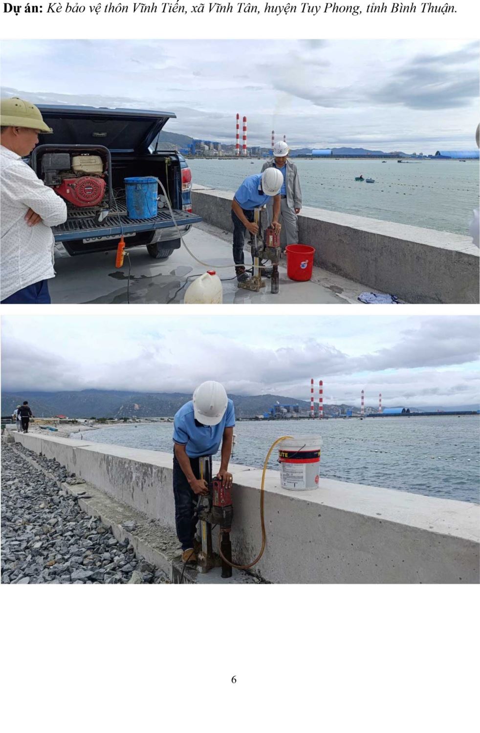 Công trình kè bảo vệ thôn Vĩnh Tiến được xây dựng nhằm chống xói lở, bảo vệ khu dân cư ven biển trước tác động của thiên tai. Trong quá trình thi công, các hạng mục thí nghiệm hiện trường như kiểm tra đất nền, vật liệu xây dựng và kết cấu kè được thực hiện đầy đủ.