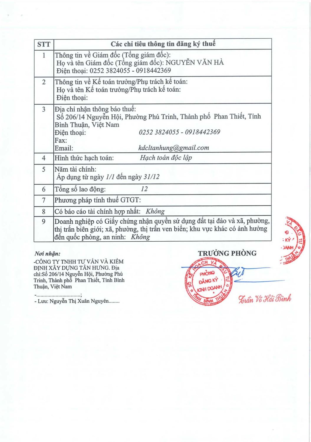 Tên công ty: Công ty TNHH Tư vấn & Kiểm định Xây dựng Tân Hưng