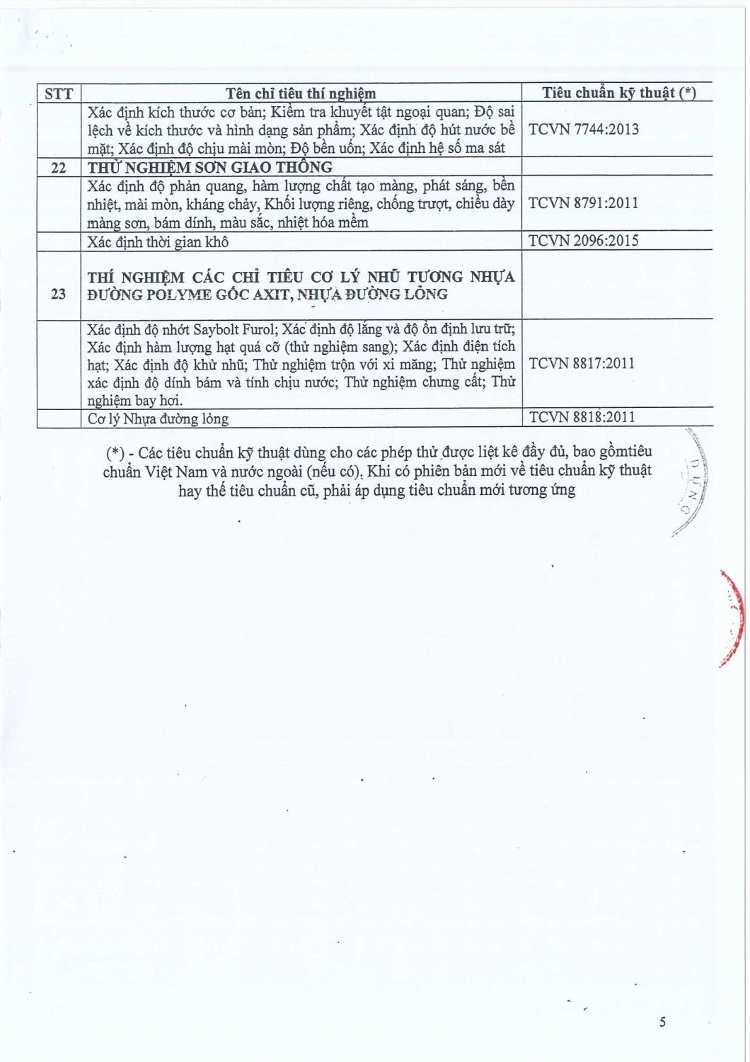 Tất cả các phép thử đều được thực hiện theo tiêu chuẩn như: