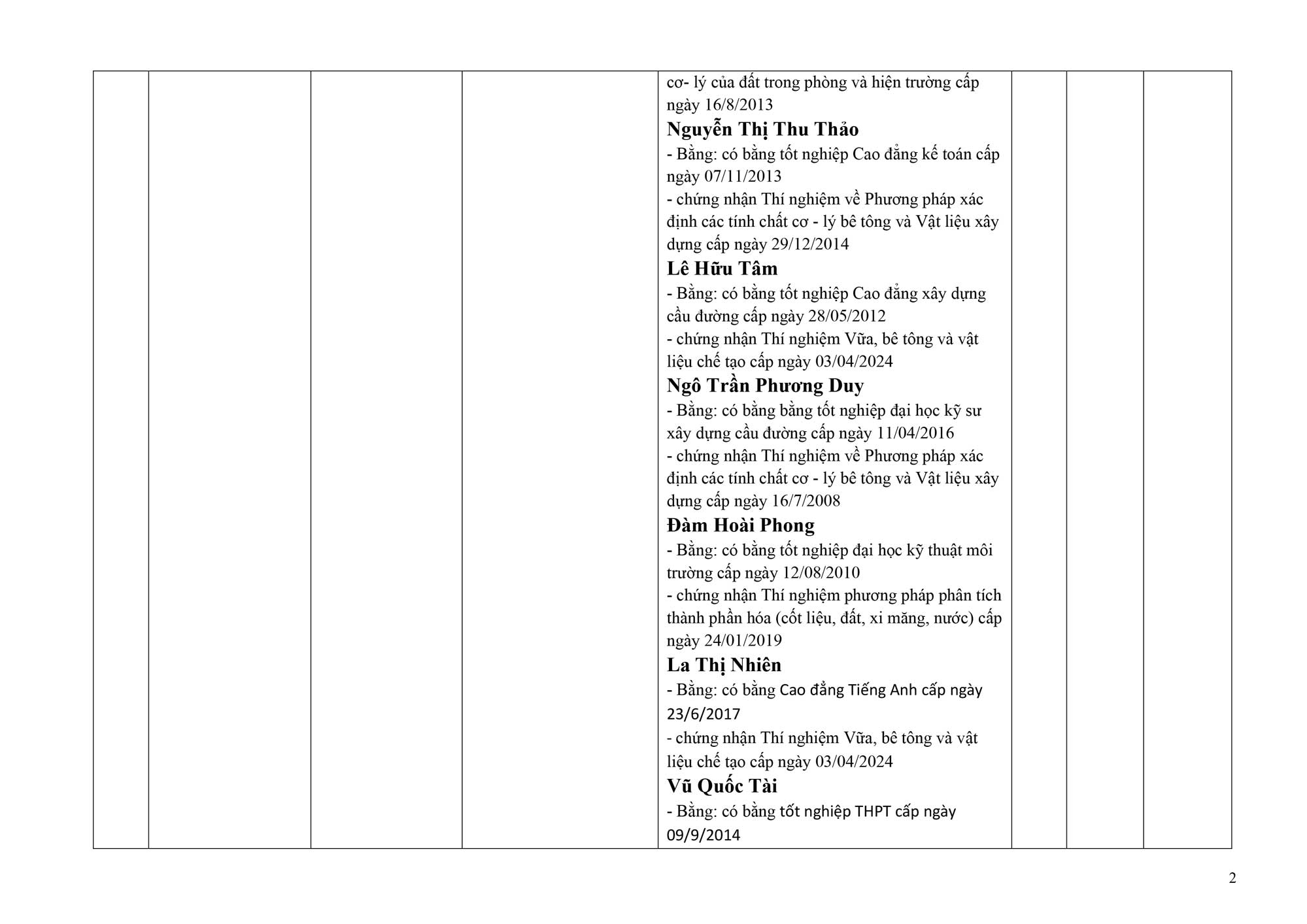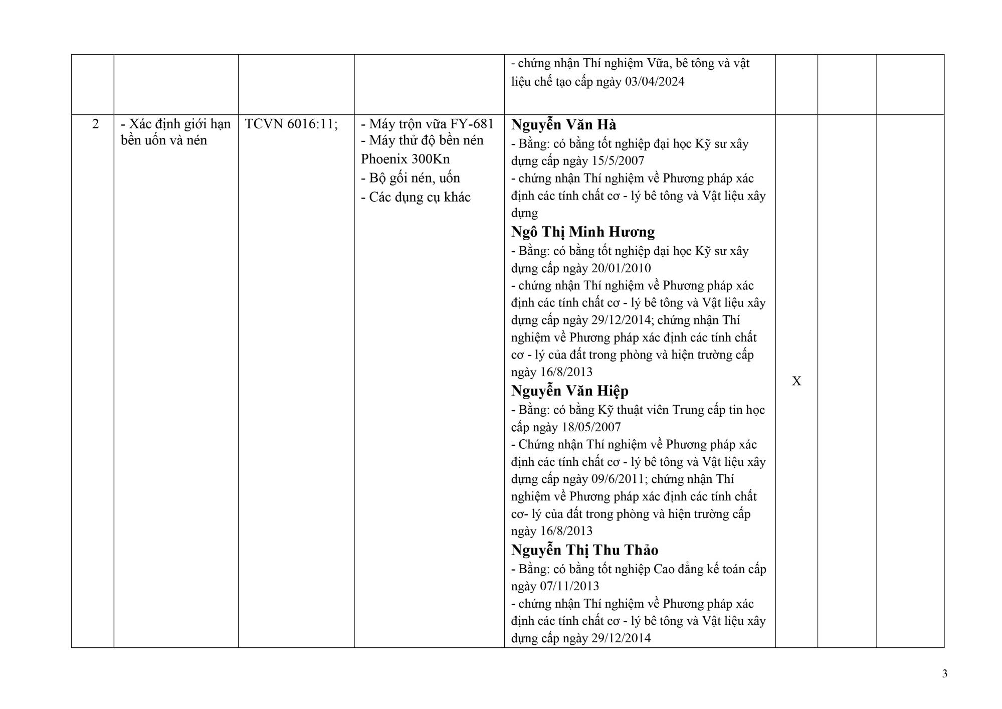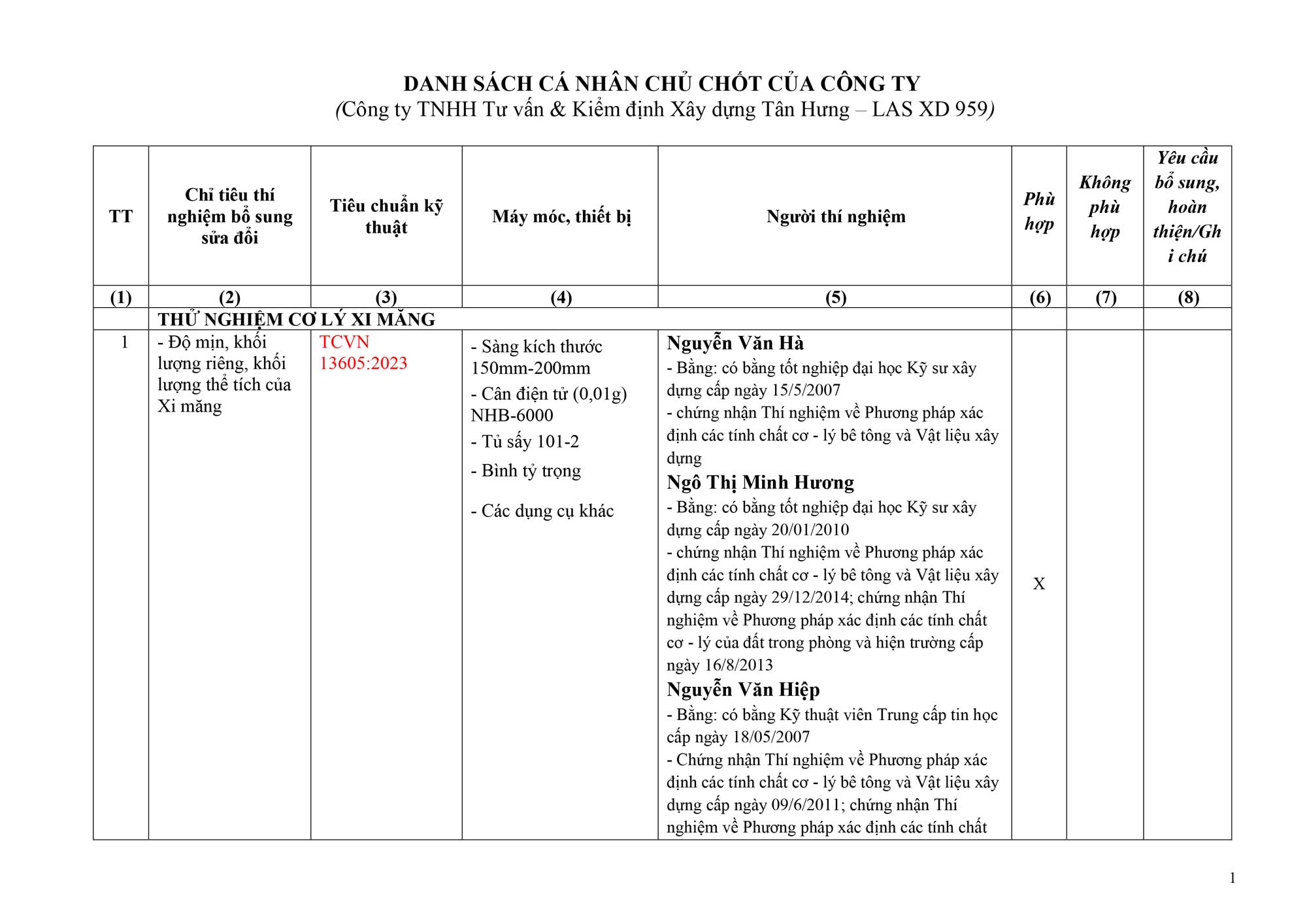 👉 Tất cả nhân sự đều được cấp chứng nhận về thí nghiệm vật liệu, kiểm định bê tông, đất và các tiêu chuẩn xây dựng theo quy định.