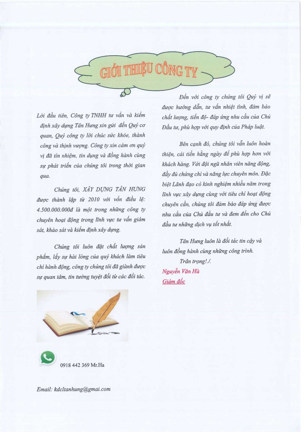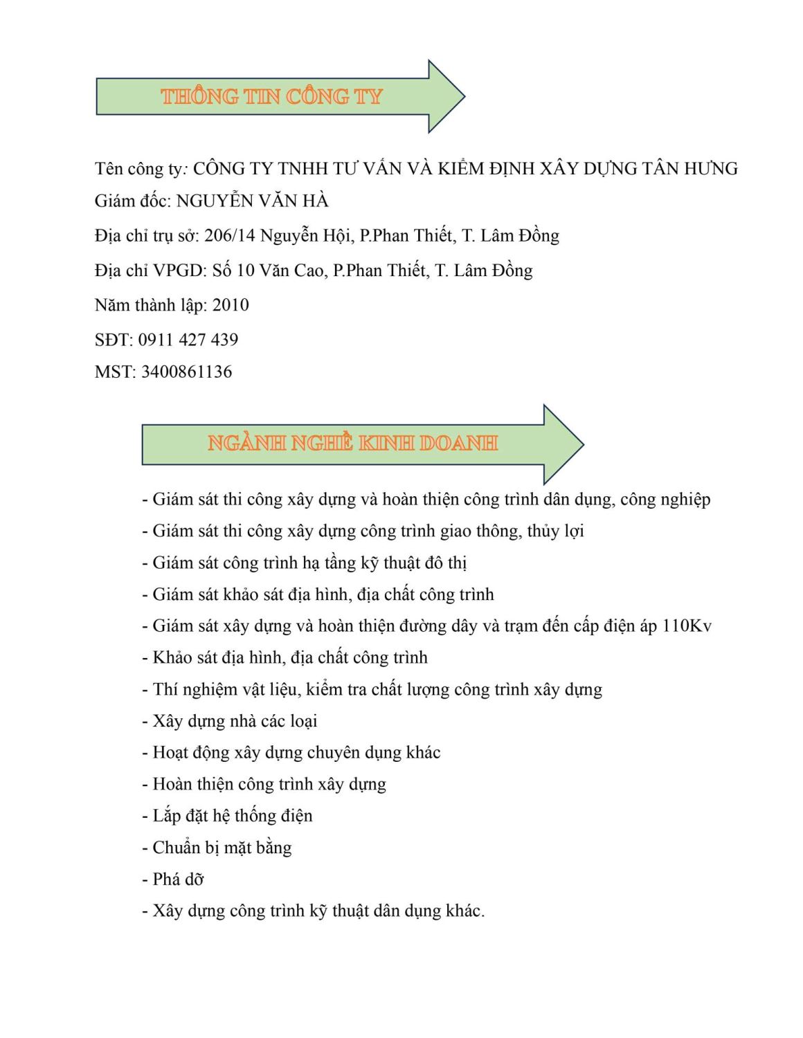 CÔNG TY TNHH TƯ VẤN & KIỂM ĐỊNH XÂY DỰNG TÂN HƯNG