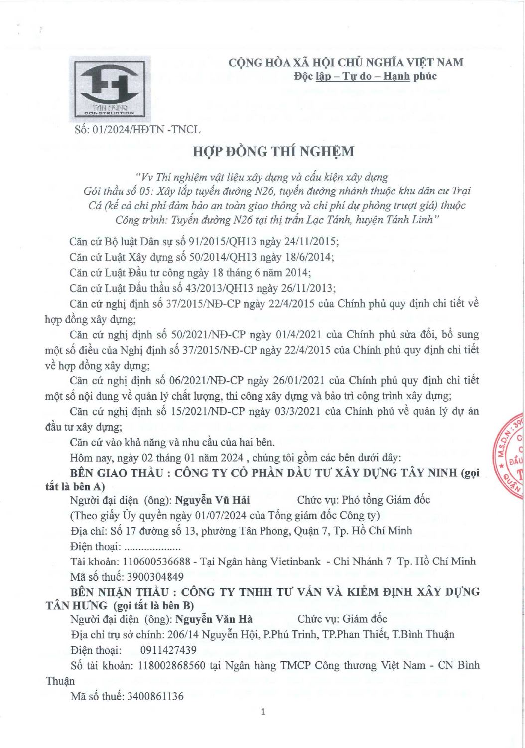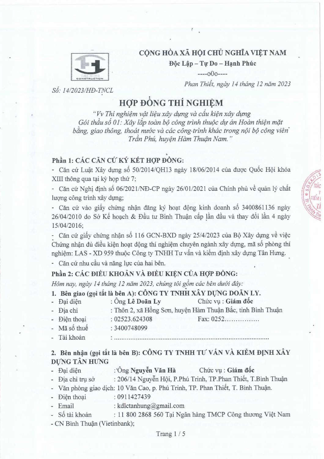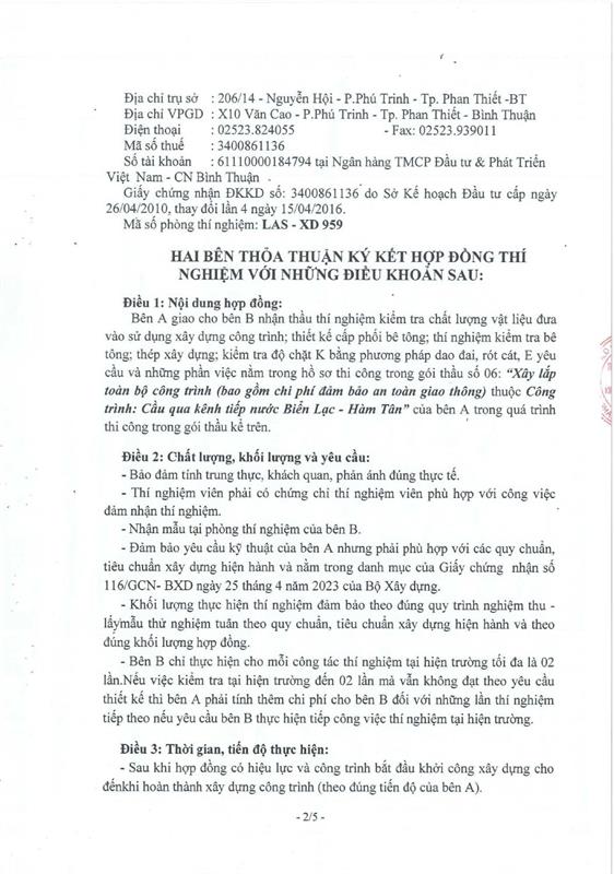 Hợp Đồng Thí Nghiệm