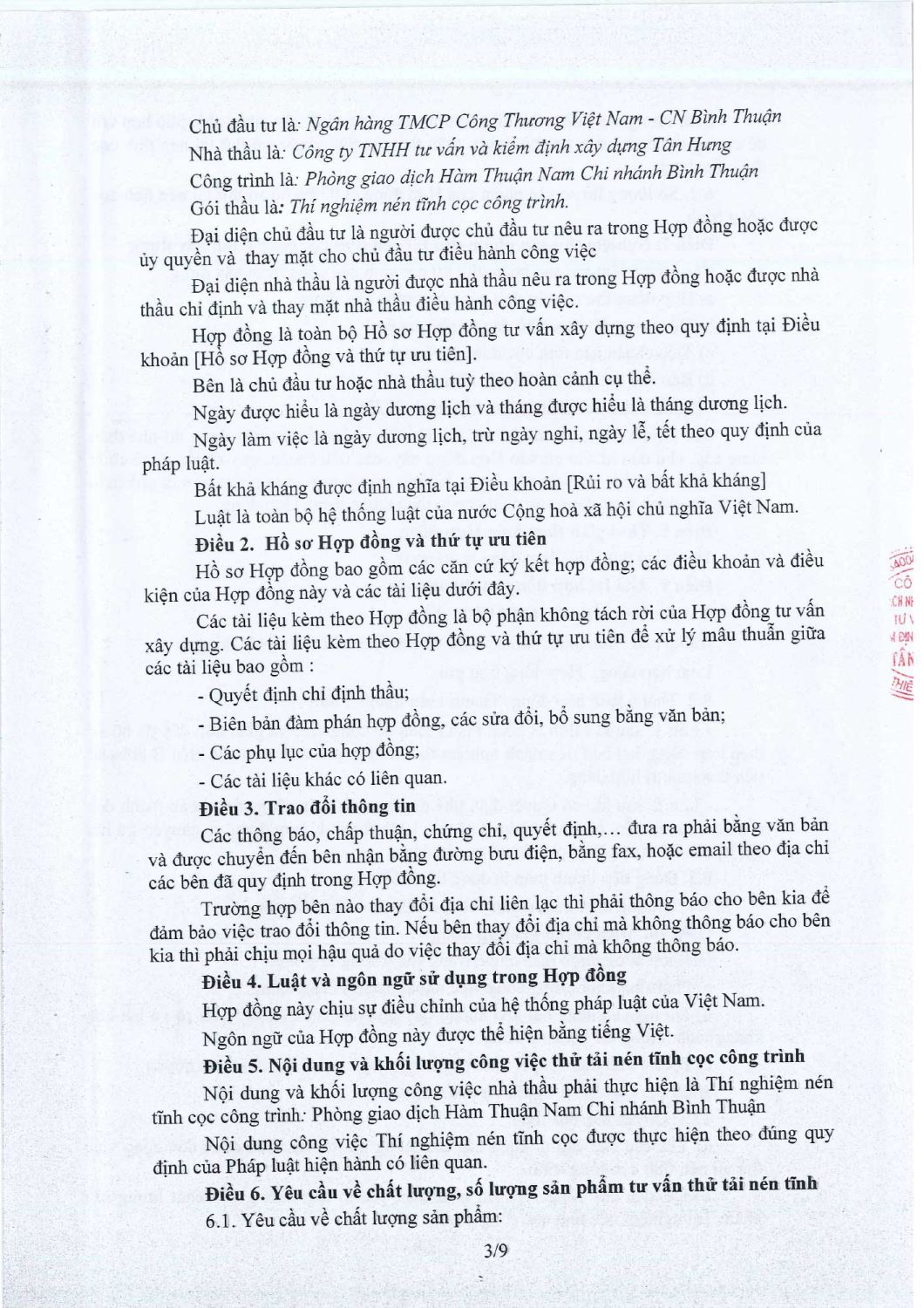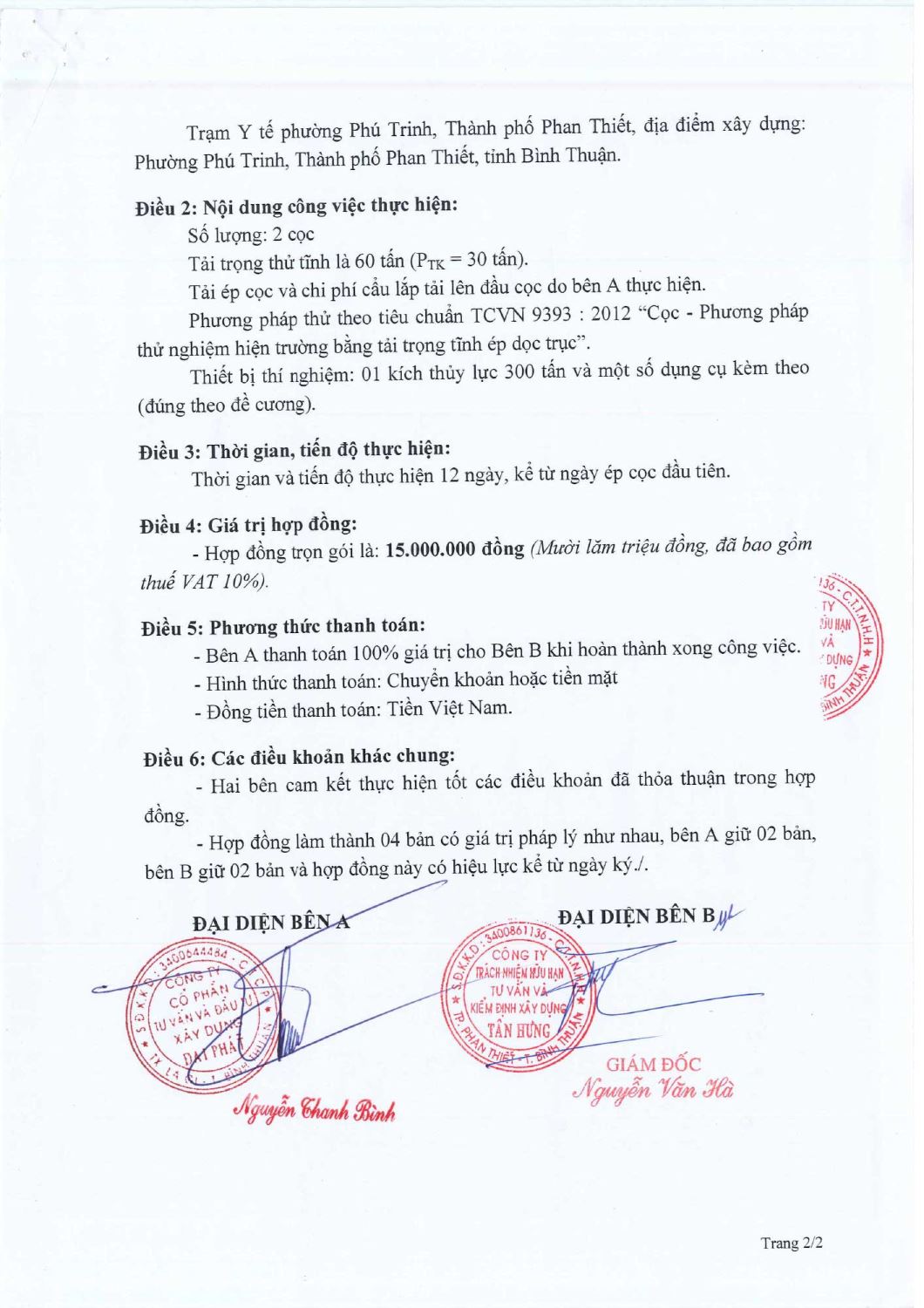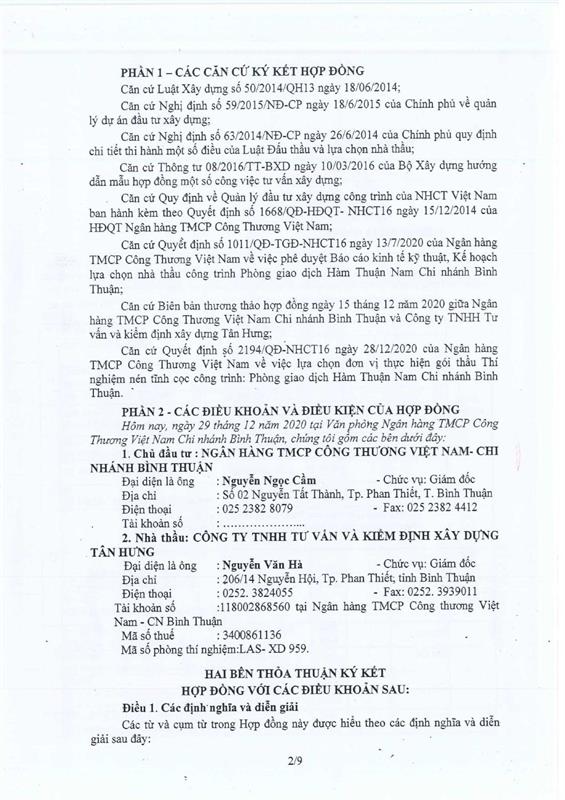 Hợp Đồng Thí Nghiệm Nén Tĩnh